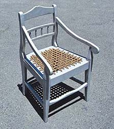 The concept is intriguing, however. Smith says the riempie chair is to an extent a symbol of his own culture or tribe, 'an object of craft or design which presents an opportunity to deconstruct, reinterpret and reassemble'. He says in this process of unraveling, there is an opportunity to reassess heritage. But the final artwork could perhaps go further in its reconstruction to achieve its own aims.