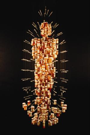 'Not Alone - An international project of Make Art/Stop Aids' includes works by artists from Brazil, the USA, India and South Africa in a variety of media including painting, sculpture, photography and embroidery. A highlight will be the Keiskamma altarpiece embroidered and beaded by 120 people from the Eastern Cape. Another iconic piece is Medicine Man by Daniel Goldstein and Daniel Kapellas, a sculpture comprising over 300 empty medicine bottles and syringes used by the artists over the 20 years since they were diagnosed as being HIV-Positive.