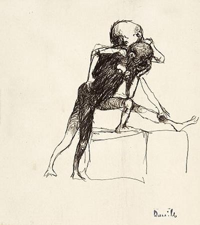 Williamson's collaged print, built up with layers of paper and found images, demonstrates how history and obfuscation play their part in our reception of historical events. The photograph to which the title alludes is placed in the bottom right-hand corner, almost falling off the page, as if it is a summation of the textual landscape that surmounts it. The array of Walter Battiss works, ranging from a San-inspired Surfing (1971) to his sensitive and Cocteau-like The Lovers (1971) is another striking reminder of the resourcefulness of one of our 'greats'. Surfing recalls Battiss's lifelong engagement with and passion for rock art but brings a fresh and witty approach to the stylistic language of cave painting: something that only a lifelong dialogue with San art could do.