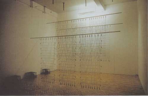 By 1992, South Africa was clearly on the road to its first democratic election, and the beginning of 1993 brought a belated invitation to the 45th Venice Biennale to be opened in June of that year. It was the first time South Africa would be represented at this significant international exhibition in 27 years. Selection was entrusted to the South African Association of Arts under the presidency of Louis Jansen van Vuuren. Countries at the Biennale are usually represented by one or at most, three artists, but in 1993, South Africa, in an attempt to be as representative as possible, sent the work of no less than 27 artists. The most important selections, showing in the Italian Pavilion in the Giardini di Castello, were , visionary sculptor Jackson Hlungwane and fabric artist Sandra Kriel. Ceramicist Bonnie Ntshalintshali was selected for 'Aperto', generally regarded to be the cutting edge of the Biennale, and 24 more artists could be seen at the Palazzo Giustinian Lolin. Though no State funding was available for participating artists to attend, most of the white artists made the trip. Too late, the organisers realised there would not be a single black artist at the opening, and sent a hurried message to Jackson Hlungwane that an air ticket would be made available to him. Carving away on his hillside in the far north of the country, Hlungwane declined, sending back this classic reply: "The message is good, but the radio is bad." Off the beaten track in Venice the auxilliary exhibition might have been, but enough curious visitors found their way there to send out the message: "South Africa is back in the game." And then, too, Christopher Till, Director of Culture for the city of Johannesburg, chose the event to make known to the world that Johannesburg was in fact planning its own Biennale, less than two years in the future, and would be looking for the full support of the international art world in this venture. The idea had been the brainchild of Lorna Ferguson, ex director of Maritzburg's Tatham Gallery, and Ferguson and Till were to become partners in planning and selling the first Johannesburg Biennale to the world. With the dawning of 1994, with the first democratic election now clearly in view, what better way for an international art person to get a piece of the new action than to go and see what was happening in that little bit of Africa until so recently in the political wasteland? Under the tutelage of AICA, the Africus Institute of Contemporary Art, funded by the city of Johannesburg, curators and museum people from around the world began making the trip down south. The premise of the first Biennale was to invite leading curators from a number of countries to put together shows involving their own artists with local selections. For instance, French curator Jean Hubert Martin's selections included Christian Boltanski, Thomas Hirschorn, and local artist Ian Waldeck. South African curators included Kendell Geers, who snared such international luminaries as Janine Antoni and Ilya Kabakov, and Emma Bedford, curating an all South African show under the title 'Objects of Defiance, Spaces of Contemplation.' On the Fringe, Wayne Barker scored something of a coup with a show entitled 'Laager' - a ring of shipping containers with one artist to transform each space. 'Laager' was set up in the open space between two of the main hubs of the Biennale, the old Electric Workshop, dramatically transformed for its new role as art venue, and the MuseumAfrica. The show was vibrant enough to elicit an invitation to the artists to restage the show in Chile. Another of the successful aspects of this Biennale was a programme which looked at redressing the abysmal lack of young curatorial skills in the country - each host curator took on one young South African as an intern, a programme which has led to the development of such talents as Clive Kellner and Tumela Mosaka. Of course, within the country, not everyone was in favour of the Biennale in the first place. To many it seemed that at a time when overseas funding for local community art projects was drying up (the battle against the State being seen as won), that the vast expenditure needed to bring a Biennale into being could have been much better spent building up grassroots skills and initiatives. The elite are catering for the elite, ran this argument. Our people do not even have the money for the most basic art materials. We cannot afford this kind of grandiose gesture. Countering this, Christopher Till would continue to point out over the next few years that for the powerful international art vistors who came to Johannesburg especially for the occasion, it was an education into the situation here, and that any number of the large and small exhibitions and art opportunities which arose for South African artists in the following years could be traced back directly to the Biennale. And what was happening on the collection front? In 1992, in a special issue of the City of Johannesburg, South Africa's only art journal of note at the time, ADA, Art Design Architecture, had this to say under the heading of Corporate Art: "As the commercial centre of South Africa, Johannesburg is home to many corporate head offices, and the base for their art collections, some of which date back to the 30's. Serious collecting with business of shareholder money is a relatively new area of investment. Even so, a number of corporations prefer to remain silent about their activity, believing that public knowledge of expenditure on fine art assets will anger the trade unions. In terms of visible involvement in the arts, several big businesses come to mind: The Rembrandt Foundation (based in Cape Town and Stellenbosch), The Standard Bank of SA and Sasol". Thanks in no small way to one of South Africa's most visible artists, Kendell Geers, this modest approach to corporate collection was about to change.