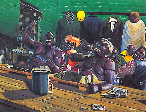In 1994, the Johannesburg mining house Gencor appointed Geers as art consultant, with a brief to build up a corporate collection, giving him a restricted budget but what amounted to a free artistic rein. The core of the collection, installed in the lift lobbies, consisted of ten works embodying the spirit of the new dispensation by such artists as Willem Boshoff, Willie Bester, Durant Sihlali and Penny Siopis. Dozens more works hang on the passage walls. As the chairman of Gencor was to write in the catalogue, published in 1997, "One day, early last year, I found a group of unskilled labourers �in animated argument around the Trevor Makhoba work that hangs in room 477. Never had this happened around the pastoral scenes of our earlier era. Perhaps that is the real measure of good art - Everyman cannot avoid involvement." In recent years, Gencor's example has led to the foundation of other progressive art collections by such companies as MNet and Vodacom. Overall, the promotion of South African art has always been kept back by weak infrastructure and a chronic shortage of money. Take the case of art journals. Documentation of the country's art activities at the beginning of the nineties resided in the quarterly magazine of the SA Association of Arts, distributed free to members, which limited itself to reportage on activities and artists related to its galleries, and ADA magazine an extremely handsome publication which in spite of winning an award as best magazine in the country, came out at long irregular intervals, never managing to convince advertisers to buy sufficient space to guarantee its survival in the market place. The last issue of ADA was to appear in the mid nineties. In 1993, the country's most highly respected art critic, Ivor Powell of the then Weekly Mail, became editor of a new publication which would supersede the old SAAA Calendar: Ventilator. A promising first issue with great design and well written articles met an enthusiastic reception from the art world. But the same problem - lack of advertising money to finance publication - would force the closure of Ventilator after the launch issue. ArtThrob, the monthly magazine on contemporary art first went online in August 1997 and is now updated weekly, but not until 1999 would there be another attempt at the launch of a printed art journal. This time, the question of money would be sidestepped by garnering sufficient sponsorship to distribute the magazine free. Co@rtnews, under the editorship of Clive Kellner and Fernando Alvim, considers culture in the entire African continent, and has now produced its second issue. But to get back to the artists and the work that they make. How has this developed in this decade of radical societal change? Following world trends, artists began quite early in the decade to utilise such forms as installation art, and that favoured form of the international art world, video, is slowly taking hold. In 1999, one of the first all-video shows, Channel, was curated by Robert Weinek at the Association for Visual Arts in Cape Town, featuring a number of video installations by such artists as Malcolm Payne, Bridget Baker and Stephen Hobbs, and a row of monitors with looped contributions from many more artists. To discuss shifts in the way in which artists have attempted to deal with the transformative aspects of the new society is far more complex, and beyond the scope of a brief overview. It was this aspect of course: just how artists were dealing with the new dispensation, that captured the attention of a number of curators, both South African and international. Stimulated by the first and second Johannesburg Biennales and a sense of breaking virgin ground, a large number of survey type group shows were curated into being. One only has to look at the titles of these shows to sense the thrust of their curatorial intentions: Colours (1996), Don't Mess with Mr In-Between (1997), Passages (1997), Rewind Fast Forward .ZA (1999), Emergence, (1999), Liberated Voices, (1999). Inevitably, the quality of these shows varied. While many seem to have met with a measure of critical acclaim abroad, a reading of those foreign reviews is revealing. One finds a distance, a careful attention to political correctness, a desire to applaud the initiative, a sometimes quaint linking of the news of the show to such information as the fact that Michael Jackson is househunting in South Africa. Closer to home, critics, notably Brenda Atkinson of the Mail & Guardian, the country's most highly regarded newspaper, have become increasingly vociferous in their cutting analysis of these shows. The main criticism is that lack of curatorial rigour and attempts by curators to be too inclusive, too broad, too representative of the demographic situation within the country have resulted in a kaleidoscopic rather than a focussed look at the subject. Nonetheless, it must not be forgotten that to foreign audiences, these shows have often served as an enlightening and absorbing introduction to the art of a country of which they knew almost nothing. Editor's note: This subject has proved too large for the three instalments originally envisaged. The series will continue next week, and look at the 'post-apartheid kids', the second Biennale and its aftermath, and the role of museums in the nineties.