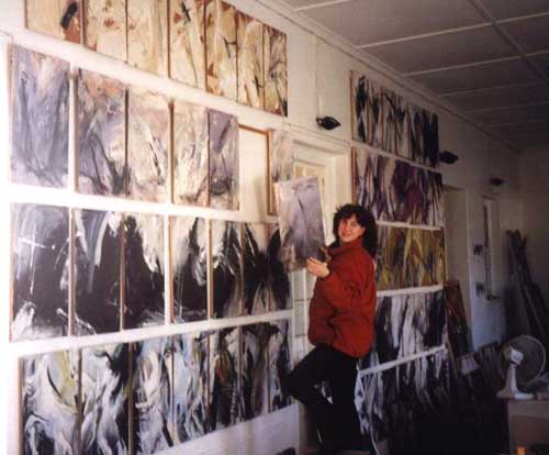 Nigel Mullins began the millennium by being nominated for the Daimler Chrysler Award for contemporary South African Art 2000. Later in the year he won a merit prize at the ABSA Atelier 2000 The work to be exhibited here, entitled 'Hopeful Monsters', includes his award-winning series of oil paintings 'An Aesthetic for Cruelty and Violence'. Mullins is known for his oil paintings which, while skilfully crafted, are invested with a manic energy. His large single-figure 'Superhumans' from 1999 have, through a set of anarchic mutations, become the single heads which comprise his new work. These have retained the complex juxtaposition of abstract and literal elements of his previous work. 'An Aesthetic for Cruelty and Violence' is a formally composed set of 42 paintings, rigorously created and sumptuously coloured. Each smaller piece within the whole is the setting for an act or acts of violence, either blatant or inferred. From the jewel-like brilliance of early Western altarpieces to contemporary starkness, there is a rhythm and a beauty which cleverly and clearly sets up a paradox of aesthetic and violence. This, his second one-person exhibition at the Hänel, will be followed by shows at the Royal Overseas League premises in London and Edinburgh, as well as exhibitions in Germany. He will also participate in "Art Fair 2001" in Frankfurt.