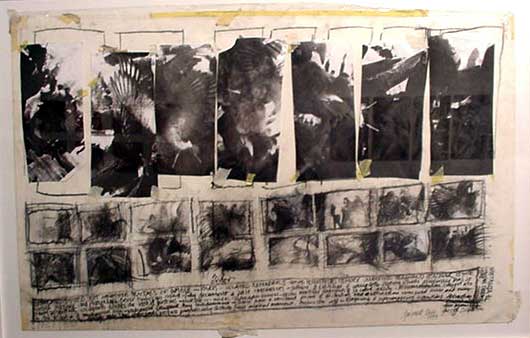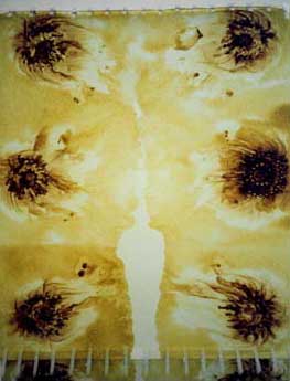 Although slightly marred by three artists who ignored the size requirement for Van den Berg�s show �Self" and turned in much smaller works at the last minute, this second instalment of what is to be a three year project looked very good indeed. Jeremy Wafer�s Crest displayed his usual formal rigour and came out looking like a cross between a Rorschach blot and a colonial crest. Christine Dixie plays with the medium, placing a cutout aquatinted image in sepia of herself unravellling lino engraved lines of an Eastern Cape landscape.