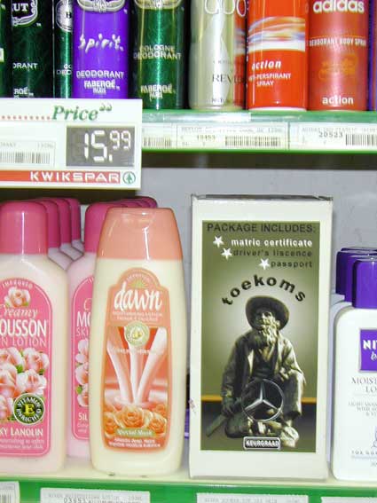 Alwyn Petersen and Elmi BadenhorstArt irritates life Project consisted of fake products placed amongst legitimate merchandise on the supermarket shelves.