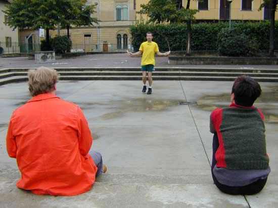 Gregg Smith, currently resident in Amsterdam, will give a public performance on Turin's Via Po, titled Trams Taken and Trams Missed. Utilising performance and video, Smith's current work involves the artist telling semi-fictional narratives while doing various physical activities, in order to "explore new ways of committing to one's personal situation, body and emotions. ... [S]imultaneously it is a meditation on the condition of trying to go in two directions at once - feeling one thing and acting another."