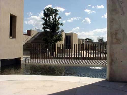 This introduction to apartheid, via its pseudo-scientific filtration system, would not have been as effective were this first display followed by another exhibit cataloguing more of the same. To their credit the designers cleverly opted for a reprieve. Exiting the first display one must walk up a gradually inclined slope. This open-air path leads to a resplendent vantage above the museum, allowing one time to reflect upon both the literal and metaphorical value of the upward trek.