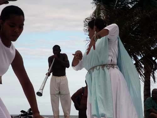 Seeing a troupe of pantsula dancers, devils and angels, impose their delicate, delicious mock-reality onto the architectural landscape of 320 West Street illustrated how much of physical reality is occupied by our own projections, by our own stories. On the North Beach promenade Celtic, Shembe and Indian dancers moved in a polylogue of patterns with the tongue of the Indian Ocean, that sea that has delivered so many human beings onto this land, licking the shore in the background. In the sunken coffee shop in the Workshop, a suburban soap opera unfolded before the eyes of hundreds of onlookers. The Albany Hotel, more discreetly, was witness to the inner workings of a couple's tortured relationship, and from the Musgrave Centre office tower a black kugel abseiled from the top of the office tower to the sweet, sweet strains of isicathamiya singers and local rising performing star Joel Zuma proclaiming "humanity is not for sale".