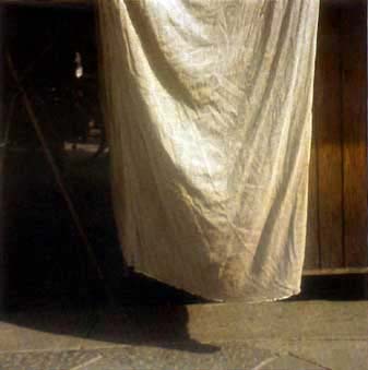 On entering the exhibition space, the viewer is greeted by two large hessian sacks, one spilling a mound of raw cotton, and a virulently red radio (my guide) tuned to a local station. At first glance, the significance of these objects eludes me, and I turn for further clues to the photographic part of the installation: two series of images, evenly interspersed between each other, surrounding the installation piece. The first series is an almost sensual depiction of the diffuse, late afternoon Florentine light as it plays across the rough surface of a fabric structure, while the second comprises crisp, high-resolution representations of the lifecycle of a species of moth indigenous to South Africa. Appearing at first to be wholly unrelated, the two sets of images, on closer inspection, begin to resonate with echoes that set the tone for the subtle (if perhaps tenuous) visual dialogue at the heart of Botha's exhibition.