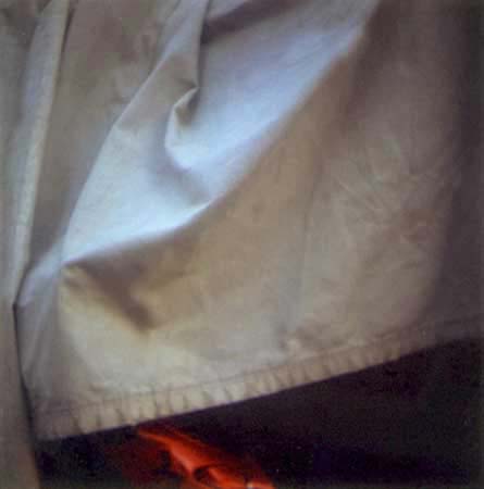Resplendent with visual and metaphoric allusion as the images are, I am nevertheless forced to consult the artist's statement in order to try and "tie up" the various threads, and in the process weave together the separate components of this exhibition. After reading in the catalogue of Botha's encounters with three Marys (one of whom is mentioned for her connection to the silk trade and her gift to Botha of a small radio - "the size of a human heart"); of a family heirloom destroyed by clothes moths, and memories of a grandfather's cotton fields at sunset, it becomes more evident that Botha's exhibition reveals a concern with the impermanence associated with the continual process of becoming; the transitory nature of experience; and the ethereality of memory.