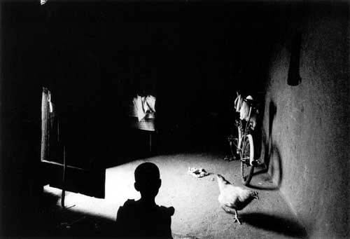 The high-contrast black and white cover, a feature common to the series, is particularly well-suited to Mofokeng's work, in which the interplay of light and dark assumes a central role on multiple levels. In the dramatic cover image, the silhouette of a child provides a point of entry into a township room, light entering through a doorway to illuminate a dusty floor, a chicken, the corner of a bed, and a bicycle. The silhouette suggests both absence and presence, echoing the figure of the photographer and inviting the insertion of the viewer, thus foregrounding the ideological role of representation in which Mofokeng declares his interest.