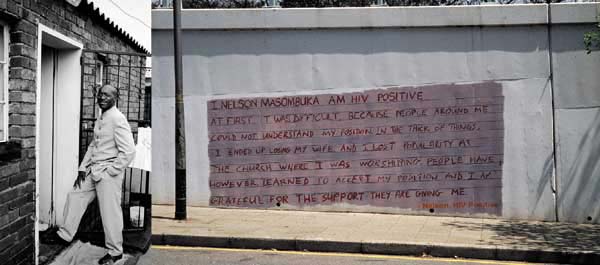 The initial result was a series of site-specific messages dealing with South Africa's AIDS crisis. Each of the graffitied messages in the series condenses into epigrammatic form the personal core of a belief or insight of an individual diagnosed HIV-positive. Although less engaging than viewing the actual graffiti in situ, the gallery presentation does add to the experience by allowing one a view of the actual subjects of Williamson's interviews.