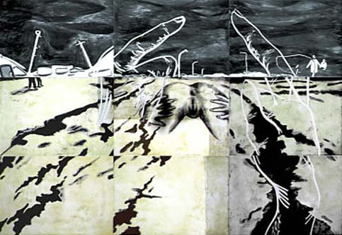 'Outpost II', however, rather than a beleaguered camp under siege in the badlands, marks necessary forays into the terrain of uncertainty. Questions rather than assertions might indicate such tentative sorties into the unknown and the works on this exhibition engage with erosion of certitude, lack of identifiability, a dissolution of boundaries between public and private, ambiguity and intertextuality.