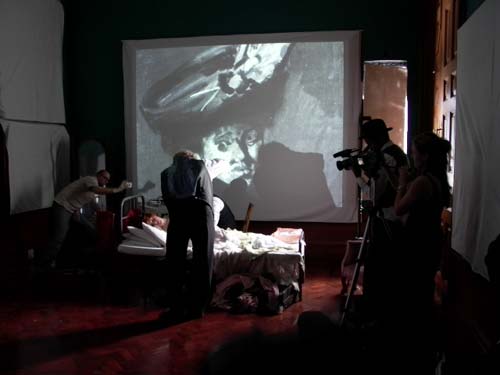 "In bringing together aspects of the theatrical and forensic, referencing aspects of Sickert's visual language and mimicking forensic processes of information-gathering and image-making through X-Ray, UV and infrared photography, I intend to produce a body of work that engages directly with criminal aesthetics," commented Smith on her carefully orchestrated performance.