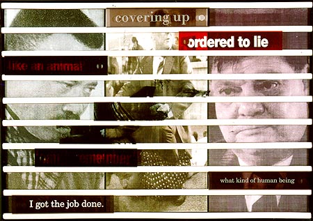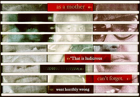 Williamson made a dozen artworks concerning the Truth and Reconciliation Commission (TRC), a series of public hearings set up to hear testimony from victims and amnesty applications from perpetrators concerning human rights violations committed during apartheid. Williamson found the TRC compelling raw material: "To think we would finally hear the truth, which was beyond what could have been imagined, beyond the veil of secrecy and absolute blatant lies. I knew I would do something with it. I cut out newspaper articles and kept files and finally had the idea to do something case by case."