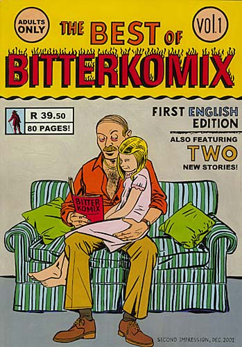 Describing the iconoclastic oeuvre o >Bitterkomix is a difficult task even for its co-creator Anton Kannemeyer (alias Joe Dog), who last month delivered the year's final Michaelis lunchtime lecture in Cape Town. That task is perhaps best left to the cover of the magazine's seventh issue. It depicts a young white girl sticking out her tongue to a series of icons representing solid Afrikaner values like home, church and family.