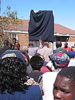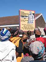 Heritage Day. Out at the Indlovini Community Centre in New Crossroads bright and early for the unveiling of the street signs. People gather at the Centre, and a troop of smart drum majorettes in white, orange and gold accompanied by a brass band lead us to the first street sign, of Tyson Thozamile Tom, one of the negotiating team who prevented the demolition of old Crossroads. Prayers, singing and speeches precede the removal of the black drape. There is cheering and ululating, before we move on to the second sign, Regina Ntongana, the crowd growing in size and exuberance as we go. By the time we reach sign no 3, Mrs Luthango, several hundred people are celebrating. The signs will help keep alive the history of the community, and when more have been put up, also serve as a tourist attraction. Through the day, I see little knots of people stopping to read them. The project has been sponsored by the Royal Netherlands Embassy.