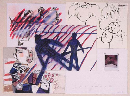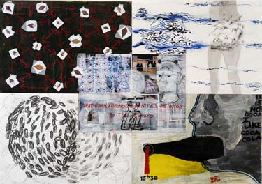 'Weather Report' is a series of collaborative works of art. During her journeys, Enghardt cuts her travel-drawings into four pieces and divides those pieces among four artists from the four winds. Using the piece as binding-factor, each artist works individually on the work of art, which arises when the four pieces are being put back together again. Connecting different points of view, 'Weather Report' attempts to reach as close as possible a complete view of the world.