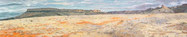 'Pofadder and Back' is a two-person exhibition of paintings by Lize Hugo and Aidan Walsh, on the mezzanine. Both well-known South African painters, one living in Durban and the other in Cape Town, they embarked on a fascinating zigzagging circle together, covering 5000 kilometres from Cape Town, up the West Coast through Pella, Pofadder, Calvinia, Hope Town, Verneukpan, Niewoudtville, Aughrabies and back. They stayed at strange places and met even stranger people.