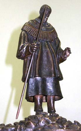 In depicting Shembe contemporary sculptors Botha and Streak have opted for a fairly traditional, naturalistic rendering of his figure. They researched his dress, paying particular attention to his official costume, and worked from the few existing photographs to make their maquette. They have created an image that does not follow stereotypical renderings of power. Instead of exaggerated gestures they opted to create a sense of quiet strength and individual endeavour.