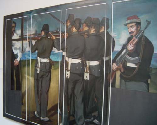 Other notable works on show were two collaborative efforts by Zwelethu Mthethwa and Sam Nhlengethwa, a mix of collage, canvass and photographic process that capably melded the aesthetic of these two artists together. Young Cape Town photographer Patricia Driscoll showcased her blurred, misty beachscapes. The photographs are far from romantic evocations of the seaside and have a disengaged quality about them, lifeless without being sterile. Brett Murray's charcoal drawing was surprise. An elaborate postcard keepsake of his Africa sculpture, the virtuosity of its execution hinted at the many talents of this Cape Town based sculptor.