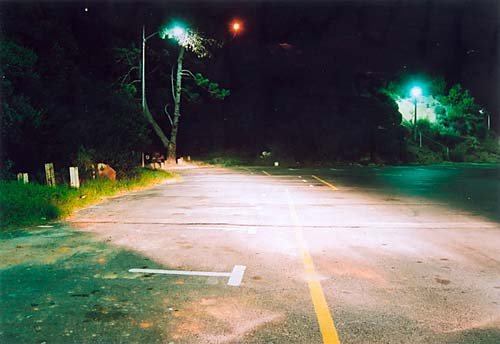Gander recently completed a series of works titled 'AFTERDARK', which she presented at the João Ferreira Gallery. This series of colour photographs concerned themselves with roadside spaces at twilight, or at night, illuminated by the headlamps of the artists' car. There are a number of precedents for this sort of modern landscape study in recent European photography, most notably Dan Holdsworth and Nadav Kander.