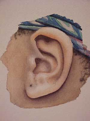 "Dietrich's noses pierced with rubies are not necessarily Indian, and his beaded, braided hairstyles are not necessarily black. An element of peek-a-boo enters this disquisition on cultural crossover: we itch to assign identities to the artist's sitters, but he withholds the full picture and frustrates any such attempt."