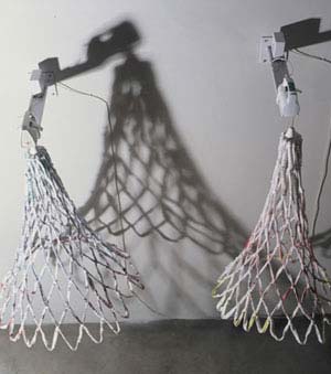 The relationships we have with our household appliances form the basis of an installation by Nicola Grobler, entitled 'The Enigma Machine: unraveling the domestic experience'. She has chosen the domestic space to explore the psychological responses and emotions encoded within it, made visible in the generic appliances that comprise her installation.