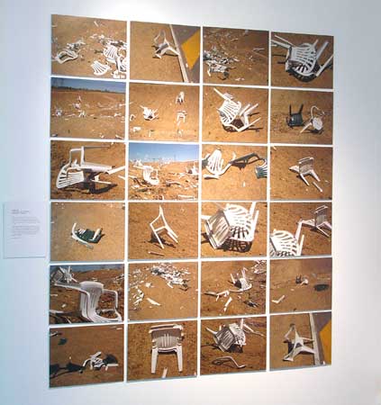 Crossing (2003) is a series of images that Fourie developed during his residency at the Art Omi International Artist Colony. The programme gave him the opportunity to work in New York with 31 other artists from around the world. Fourie chose to photograph a crossroad in Pretoria where many road deaths have occurred, capturing the remains of plastic chairs strewn around the site from a variety of different angles. He sought to create links between the fragments of the furniture and an archaeological dig. The violence of the crash site is avoided in favour of aesthetic details like patterns, tones and forms.