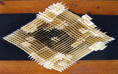 Playing with the values of bookmaking and book arts, he has produced a series of artists' books robust enough to be handled by the public. They're largely text-less or text-light books, exciting in their scientific and technical understanding of the medium and how it lends itself to push and pull in terms of folding paper, drawing with string or manipulating proportions.