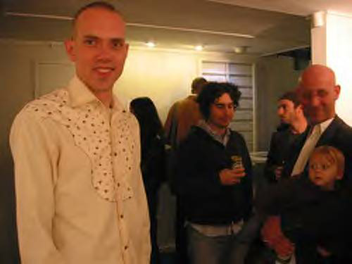 Pierre Fouche is the first artist to show at blank. The cartoon of a large tapestry is on one wall, and all the colours of the embroidery silks to be employed in the making are on display. The image is taken from a faded colour photograph taken on his parents' honeymoon - a beach shot of his father and a male friend, one with an arm around the other's shoulders. Pierre tells me that he worked out all the colours to be used by eye, and shortly after he completed the task, DMC, the manufacturers of the embroidery silk, brought out software which allows one to scan an image and then supplies all the correct number codes, so one can get a really accurate colour rendition of the image. The tapestry will take about a year to complete.