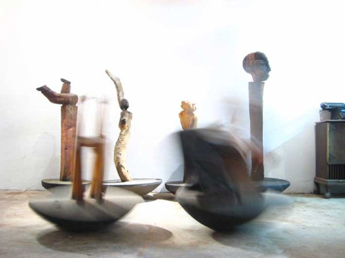 �With Logs�, an exhibition of moving sculpture by Richard Forbes is reflected in the artist�s words: �Each day in the city of gold has merit; has substance. This city never stops. Its movement, gyrating under the surface, enables us to exist. One of two major cities in the world without a river. What makes it pulse so?�