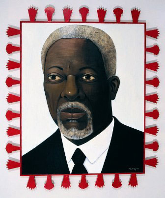 Painter John Murray's exhibition runs concurrently in an exhibition of portrait and cut-out figure paintings that draw stylistically on West African barbershop signs. Murray's new work includes large-scale portraits of a number of African leaders, including United Nations secretary general Kofi Annan, which reflects a quiet and dignified statesman. Murray will also present charcoal drawings based on newspaper photographs that explore the subtlety of interactions between African politicians.