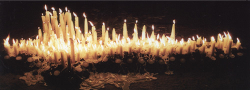 Carol Nathan Levin, a fashion designer/textile surface artist, has always created super-kitsch shrines wherever she has lived. Fifteen years ago, while resident in Los Angeles, she saw an exhibition dealing with the Haitian artform of Drapo Vodou. Constructed of sequins and beads hand-sewn onto fabric, it is a medium designed to bring life to the iconography of Haitian Vodou. On seeing this approach to artmaking, Nathan Levin decided to make her own.