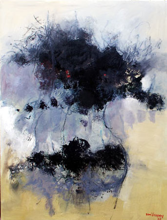 Andre van Vuuren presents 'Abstracts', an exhibition of new work. Last year he exhibited at Obert Contemporary, with a body of abstract works, yielding the following comment from Michael Coulson: 'Van Vuuren's works on paper are soft and gentle, with the contemplative tranquility of classical Chinese watercolours. They're predominately in subdued blacks, blues and earth colours, and the one work with slashes of red stands out startlingly. They're rightly described as abstracts, but your mind identifies a standing figure here, a face in profile there. Like all good art, the longer you look, the more you see.'