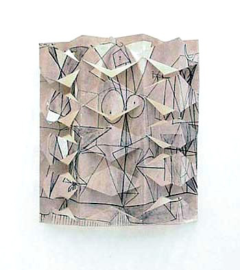 Paintings by European greats are raw material for Waldeck, who plunders images at will. One of his works quotes Picasso's Les Demoiselles D'Avignon. Waldeck cuts it, crunches and folds it until the violated painting is three-dimensional. He then mounts this image, which portrays French whores with African masks, on top of an image of casual workers in suburban Johannesburg similarly plying their trade. The result is a shocking social comment: the black males are selling their physical strengths just as the white females are selling their sex.