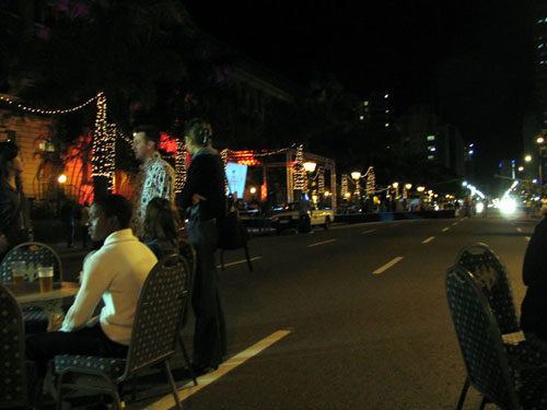 Walking in the city is great at the best of times. Walking in the city at night is particularly special and I applaud the organisers' street-closing-partying initiative. Durban has an up-for-anything, young population and the city council needs to tap into this reservoir of 'good times' to reclaim the city space. Jennifer Robinson argues that it is 'cultural resources and creative enterprises which transform city space, as much as - or perhaps even more than - political struggle and institutional reform' (Robinson, Jennifer. 1998. '(im)mobilizing space - dreaming of change' in Blank - architecture, apartheid and after, ed. Hilton Judin and Ivan Vladislavic: Rotterdam: NAI Publishers). Red Eye does just that.