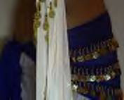 This video homes in on a woman's bare midriff, with low-slung white trousers. Her hands tie a series of long cloths in the colours of the French flag around her waist. That task completed, the silence is violently broken by a hearty rendition of the French national anthem. The woman belly dances in time to the beat. Her action breaks the silent suspense and provides a humorous release for the audience.
