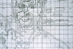 The transparency of each process is somewhat negated by the complexity but this could be attributed to the cautious relation between revealing and concealing evident in Fouché's work. Materials like dice, puzzles, graph paper and embroidered tapestries are familiar to the viewer, but that familiarity is undermined by the nature of his engagement. His processes interrupt our perceptual experience of these objects by capturing them in a way that does not conform to their conventional uses.