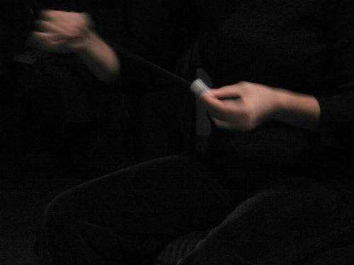 While the gallery release that accompanied the show links these photographic works formally to the work of 17th Century Dutch master Johannes Vermeer, they reminded me more of the intense, brooding chiaroscuro of Spanish painters Francisco de Zurbaran and Diego Velasquez. Velasquez's own hand, rendered in Las Meninas (1656) with such masterfully loose strokes, is especially evoked by the blurred images of Warren's hands, half captured as they nervously repeat the parts of the performance.