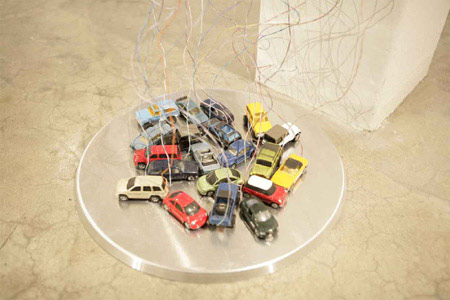In '4 auto-stroke' Nicola Grobler moves away from her usual realm of the domestic to an investigation of cars, exploring the motor vehicle as a site of private identity and as a public necessity, where a car is clearly more than a way of getting from A to B. Though the show has some interesting works, its mildly haphazard, loosely curated insertion into this neat gallery space robs the pieces of much of the impact suited to the artist's consciously chosen materials, alarm sounds and buzzing readymades.