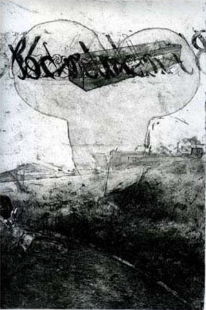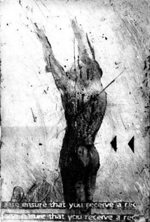 The works on 'Free for All' adopt a kind of tongue-in-cheek reworking of Resistance Art-era printmaking aesthetics, a là Kentridge, Victor and Bell. It is a calculation, a subtlety of strategy that throws the anger of Gray's mark-making and general compositional approach into sharp relief. That Gray is endlessly resourceful at activating the surfaces of his etching plates is more than evident from the works on show, and backed up by the comments of veteran printmaker Kim Berman in the guest book.