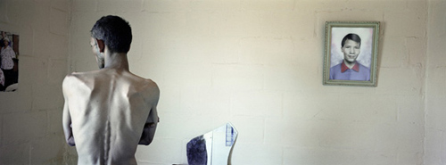 Most of this year, Subotzky has been furthering his explorations into the marginalised of society, shifting his gaze onto the rather typical small South African town of Beaufort West, situated on the main road halfway between Johannesburg and Cape Town. Atypically, the town jail is situated on a large traffic circle in the middle of town, in plain view, yet hardly noticed as the cars swing by on their way north. Subotzky's new series of work explores this milieu, both inside the jail itself, and all around the town; from a family living on the earnings of the daughter of the house, a prostitute, to the frantic excavations at the town's rubbish dump, as people scrabble for anything of value. By now, Subotzky is working only with medium format film, using only available light. His photos carry a charge, an intensity, that comes only with a genuine involvement with his subject.