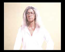 Ângela Ferreira's A Woman like Polley which hangs next to Webb's Autohagiography is dedicated to the memory of Polley, long-time director of the Cape Town Film Festival who espoused a brave and often defiant line-up of films. In the video, Ferreira pays her homage by donning the clothes and personality of the aging Polley. She commandeers his person without rendering the disjuncture between her own particularised body and his invisible - the audience is highly aware of the discomforting appropriation. Ferreira's performance is marvellously understated and respectful despite the temerity of her action. She is able to give form to the body of the other without losing sight of the matrix which situates us within a particular sexed position and institutes our longing for alterity.