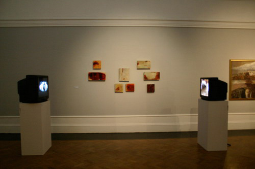 I found myself pausing between the two televisions playing Carole-anne Gainer's Pissing (2004), and Lynne Lomofsky's Cross Sections II (2000). The two works form an environment with Dorothee Kreutzfeldt's Contamination (1997). The videos constitute an intrusive presence in an otherwise quiet and reflective space. Facing Contamination, I realised this was the only point in the gallery where I was aware of being surrounded.