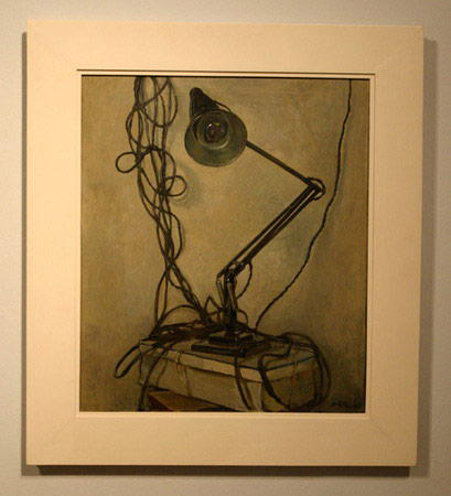 One might be grabbed by a detail: a mess of tangled cables in a painting of a desk lamp (Dorothy Kay's The Lamp (1956)). One might begin, perhaps, to build a relationship from this detail; the cables are a metaphor for a contemporary form of social connection, one that has become increasingly fragmented by the ephemeral nature of that connection. One might project a modern insecurity onto the painted surface and in a moment be denied that insight, discovering that the painting comes from an age where that sentiment, that insecurity has little currency.