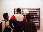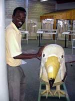 Although the extraordinary coffins of Ben Kane Kwei Sowah have been exhibited on major international exhibitions, the artist's current stint on the festival is the first time he has set up a workshop outside Ghana. In his temporary quarters at the St Andrews Design and Technology Centre in Grahamstown, Sowah, who learned his craft from his father, Kane Kwei, is engaged in the first stages of making a coffin in the shape of an onion. Coffins are ordered by prospective buyers to reflect a life interest - a giant pink fish for a fisherman, an eagle often used for a chief, a cow for a farmer. Coffins, small models, and a complete catalogue are on view. A must on the festival circuit.