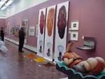 In the Long Gallery, Veronique Malherbe visually rampages right over Charles J Fourie, whose 69 haikus, on love and sexual longing, lettered in red on handmade paper, hang tamely on the wall. Read and enjoy them at your leisure in the catalogue. All This Useless Beauty preceded Malherbe's recent show at the João Ferreira Gallery, and is the beginning of her exploration into DNA, genetic codings, and the awful possibility of "crap genes". Hanging test tubes fill the gallery and Fifties-style food display cabinets at either end are richly stocked with scientific drawings of genetic experimentation with rats, and family photographs and memorabilia reflecting the family history of Malherbe and the father of her child.