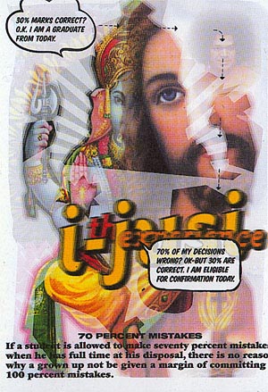 Self-professed "Official supplier of design to the Rainbow Nation", Durban's Orange Juice Design take this role terribly seriously by tapping as many sources as possible for their wild and free-wheeling designs - a pastiche of every known pictorial source in the country, put together with flair and energy. Three times a year, i-Jusi makes an appearance - an experimental graphic design magazine with a long list of contributors, which aims "to encourage and promote South African graphic design to interested creatives and writers worldwide". Only 500 copies of this 16-page A3 format magazine are published. Spreads from the magazine have been gaffer-taped up at the Picto-Ifas Gallery, and though all the magazines disappeared at the opening, you might be lucky enough to get a packet of free postcards. Or check their website: www.i-jusi.co.za.
