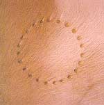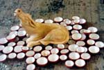 There are images of faces and circles and objects burnt and (it seems) scarified onto indigenous animal skins. There are photographic images of a heaving blue sea. That is in the smaller space at the Mark Coetzee. Viewers may enter. In the larger space, a carpet of sea sand moulded flawlessly into a repeated design may be viewed through the window. It's Marco Cianfanelli's first solo show in Cape Town. The title is 'Atlantis' and "draws a parallel between the myth of Atlantis, its existence and loss, and the idealised image of Cape Town as an 'international' city of leisure and sensory beauty". Through engaging cross-currents of techniques and images that are simultaneously age-old and hi-tech, Cianfanelli attempts to come to grips with the tricky issue of cultural identity. Until October 31. |