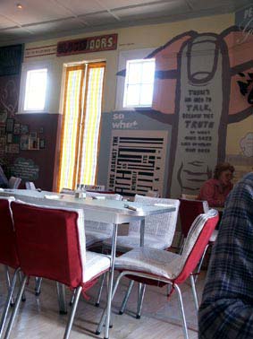 More than tipping its hat to the idea that there just might be a bunch of people out there who really enjoy the acts of reading and thinking, the space is a design experience in its own right. On just about every available surface is a feast of literary quotes in both 2-D and 3-D. These include Hunter S Thompson's quote, "I wouldn't recommend sex, drugs or insanity for everyone, but they have always worked for me," a glowing neon arrow pointing downwards with Phillipe Starck's "tomorrow will be less". These anecdotes encourage reflections on the creative life. Even the cups of coffee come tagged with a thought for the day, such as Anne Morrow Lindbergh's apt "good communication is as stimulating as black coffee and just as hard to sleep after". The bookstore, named The Store Room, encourages a more in-depth engagement with contemporary thought by selling hard-to-get, niche market books, as well as design, photography and art magazines that generally can't be found anywhere else.